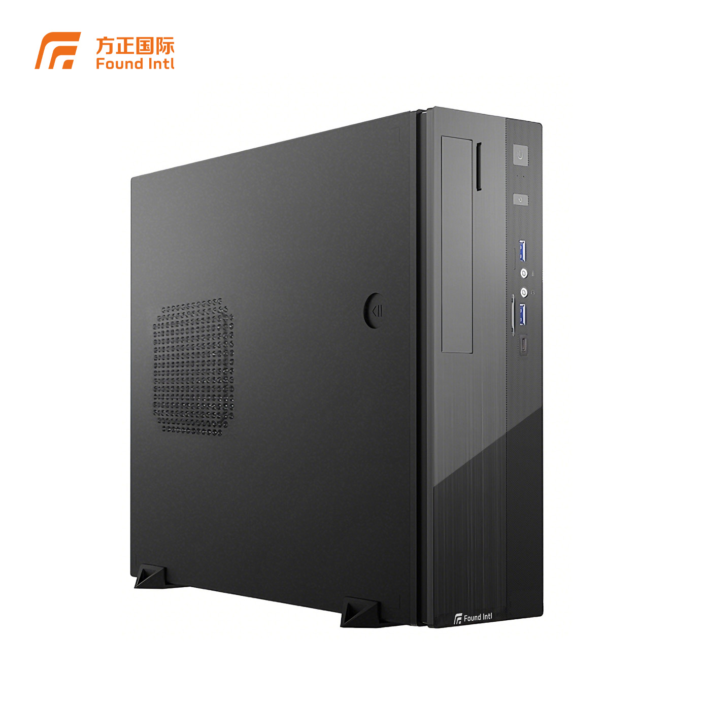 小体积机箱,别具匠心的简约机身设计拉丝前面板,碳纤维覆膜,机箱整体为磨砂材质经典商务黑,为办公场景加分。